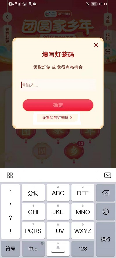 使用灯笼码去获得我们缺少的灯笼,不管是普通灯笼还是祈福灯笼都可以通过灯笼码去获得,其他参与这个活动的用户会把自己多余的灯笼通过灯笼码分享出去,然后我们可以使用灯笼码就可以领取到对方多余的灯笼,其中就有可能获得到自己想要的灯笼,也可以点击这里查看灯笼码大全>>。