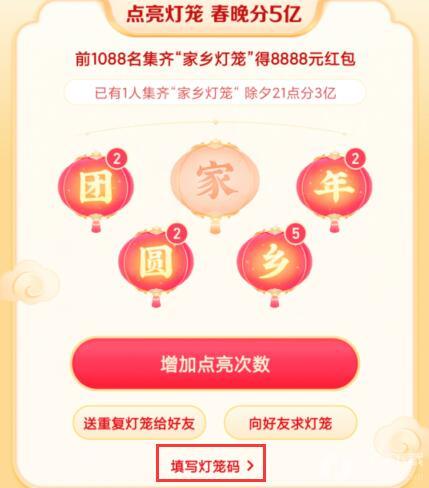 1、我们首先需要复制网页中的灯笼码,然后打开抖音,进入到活动界面中去,在活动界面里点击下方【填写灯笼码】;