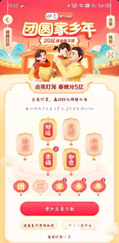 1、通过各种方法获取到“团圆家乡年”这五个字灯笼,集齐之后就可以解锁祈福灯笼;