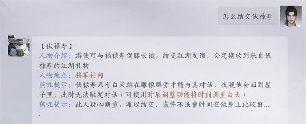 《燕云十六声》手游结交伏禄寿的三种方法分享