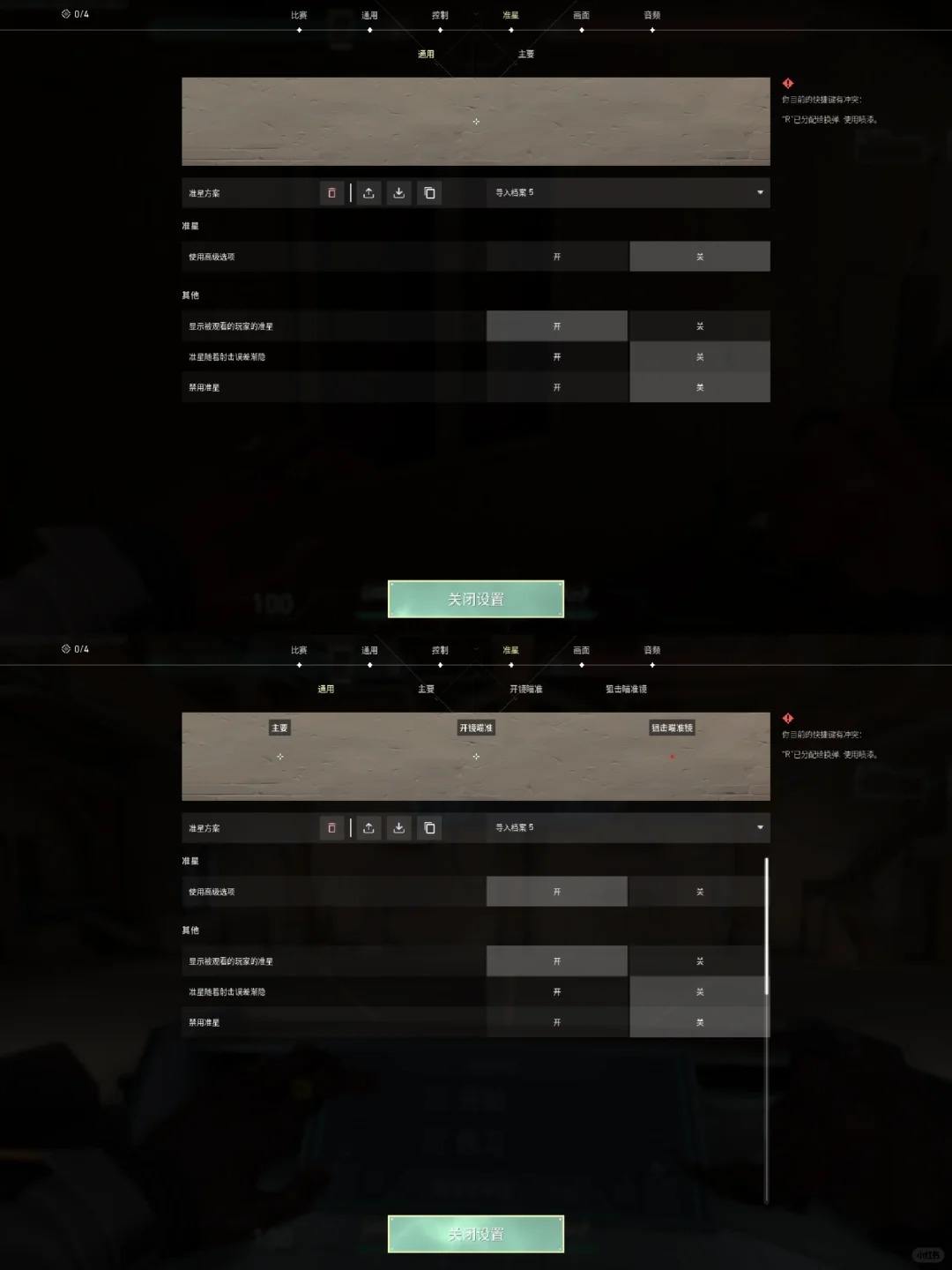 4、开启高级选项可以看到和设置到开镜瞄准的准星和狙击瞄准镜。