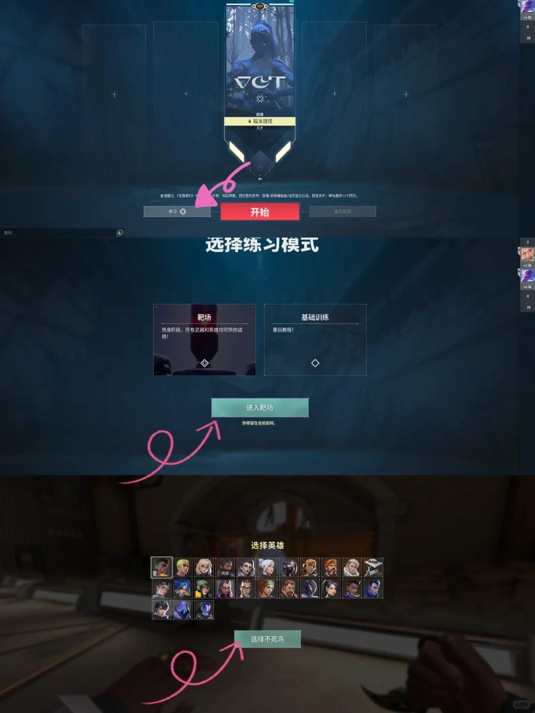1、进入训练场随便选择一个英雄,点击键盘左上角的esc,点击上方的准星。