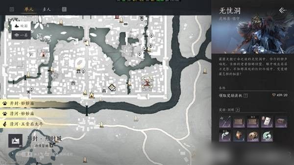 无忧洞的具体位置位于开封城角门内,玩家需提前做好准备,以应对后续的高难度战斗。