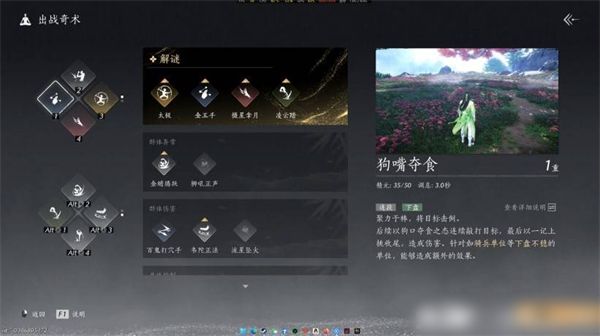 打开金宝箱即可获得奇术狗嘴夺食。