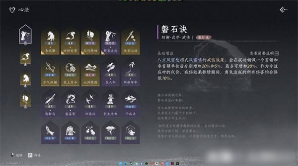 1、磐石诀可大幅降低玩家受到的伤害,是团队战中保护队友和自身的强力心法。