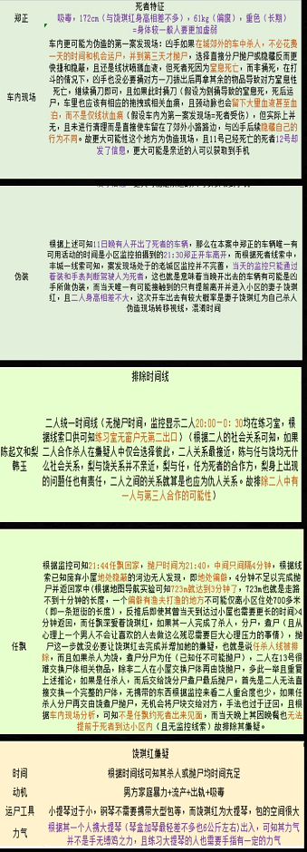 2.尸检报告:尸体虽被肢解为许多块,但肢解处粗糙,被多次砍剁,无法确定是因为力气小无法一次性分尸而导致的反复剁砍还是因为其他因素,所以仅根据碎尸这一特点,并不能排除女性作案嫌疑。