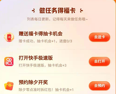 完成一些任务就可以获得福卡抽卡的机会,然后可以抽运气卡。