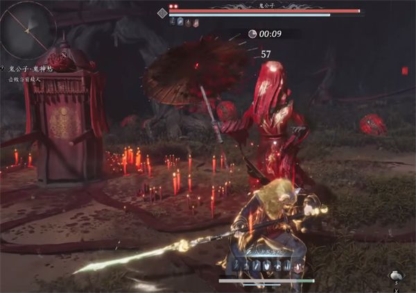 2、完成后,你将能够面对这位强大的BOSS。鬼公子拥有较高的攻击频率和丰富的技能,玩家需要特别注意他的红伞攻击和纸人阵法,及时躲避并寻找破绽进行反击。