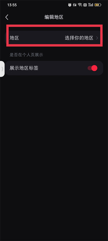 2.在编辑资料的页面找到【地区】点击;