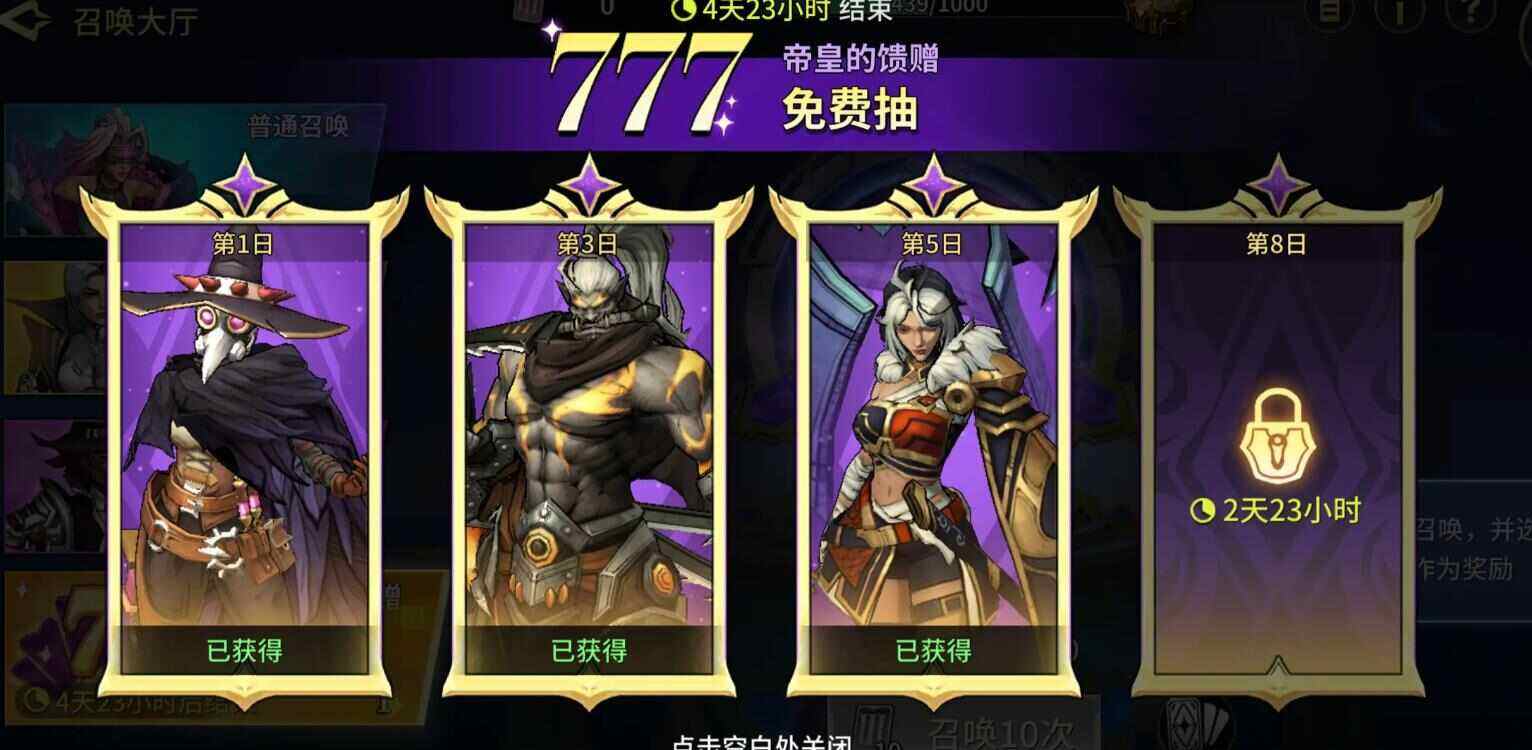 凯撒蛤蟆召唤活动开启,抽奖一轮是320抽,实际算上抽奖的奖励需要280抽,活动四天内完全可以抽满一轮,运气好抽到一只蛤蟆和凯撒领取赠送的蛤蟆和凯撒总计可以得到两套红一两套金四装备。