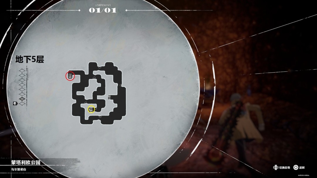 来到地下5层,左边红圈处梯子,会去地下6层西侧的直道,尽头的宝箱119,里面是古神的火剑,可以给斯特罗尔装备。