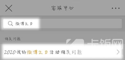 3.点击上方的【搜索框】,输入【微博之力】,然后点击第一个“2020我的微博之力活动相关问题”;