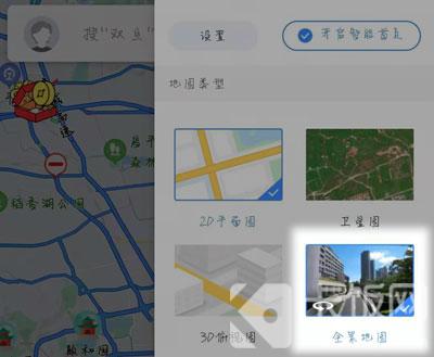 2.点击展开图层菜单后,找到地图类型下方的【全景地图】,点击(如果无法点击,将地图放大到你想要查看的位置,再选择全景地图);