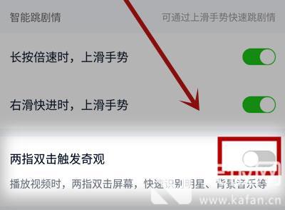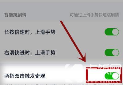 4.最后,在播放与下载中,找到“智能跳剧情”功能下方的【两指双击触发奇观】;