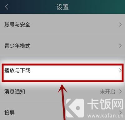 3.然后在爱奇艺设置页面,滑动页面找到【播放与下载】一项设置,点击进入设置;