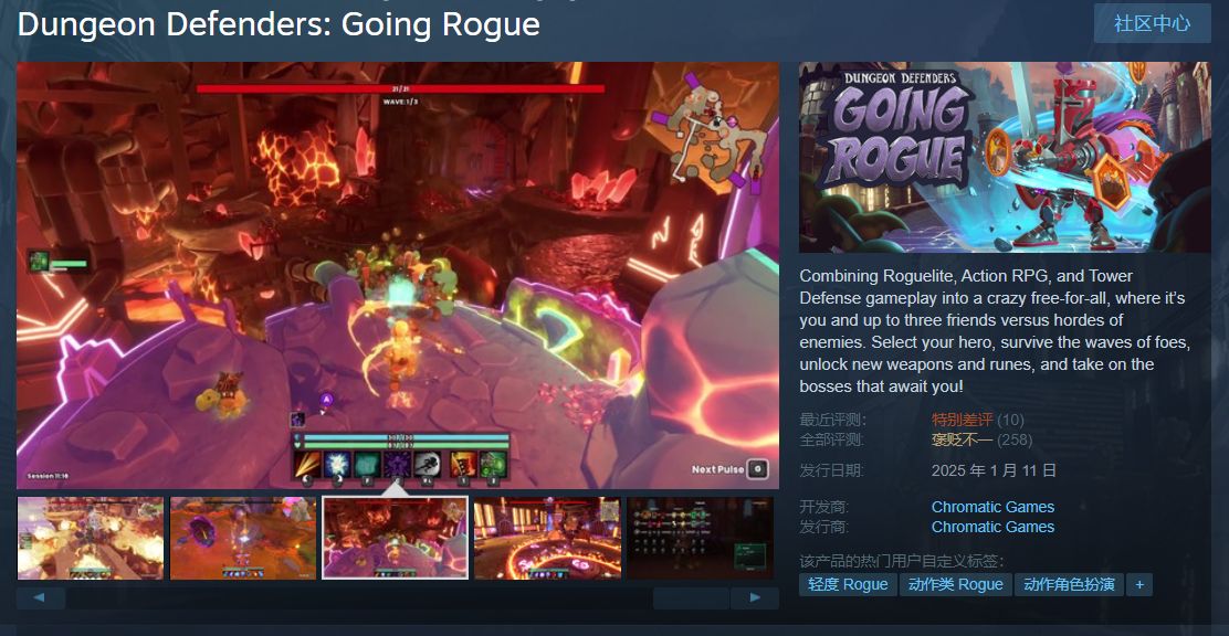 近日,肉鸽塔防游戏《地牢守护者》续作《地牢守护者:离经叛道(Dungeon Defenders: Going Rogue)》正式上线Steam平台,游戏暂不支持中文。