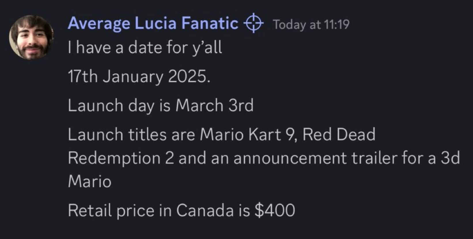 近期关于Switch2的泄露信息愈发频繁,玩家们都期待任天堂的新一代主机的到来。近日,知名爆料人@Average Lacia Fanatic在社交媒体上透露了Switch2的发售日期以及游戏阵容。据@Average Lacia Fanatic爆料,任天堂Switch2将在1月17日正式公布,并于3月3日发售,预计在加拿大地区的售价为400美元(约合人民币2933元)。此外,任天堂还计划公布《马里奥赛车9》、NS版《荒野大镖客2》以及新款3D马里奥的预告片。