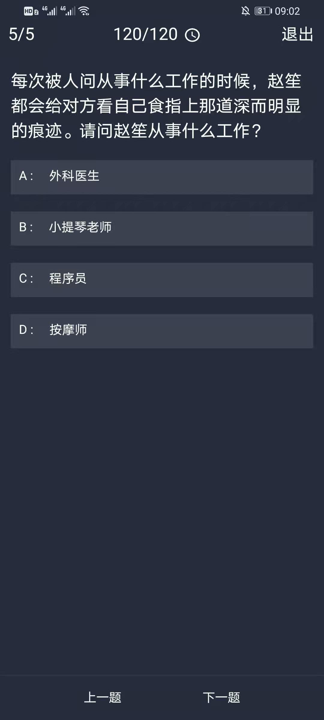 5、每次被人问从事什么工作的时候,赵笙都会给对方看自己食指上那道深而明显的痕迹。请问赵笙从事什么工作?