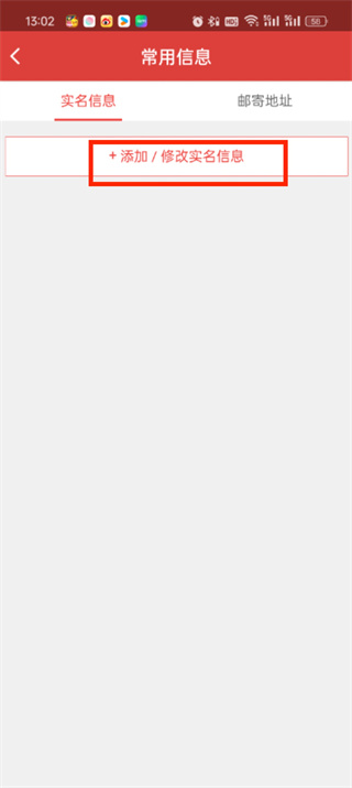 3、接着来到常用实名信息的页面中我们点击【添加/修改实名信息】;