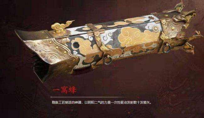2、一窝蜂:隐族工匠制适的神器,以阴阳二气的力量一次性驱动发射数十发箭矢。