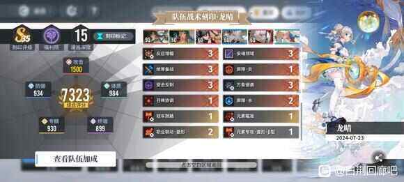 因此做了一些优化。5星自选选了芙蕖,六星自选选了龙晴。用龙晴队长跑了漫巡(烙痕不变),罗吒开场放完火屏障直接下场(等龙晴到s5甚至不需要罗吒叠激励了),