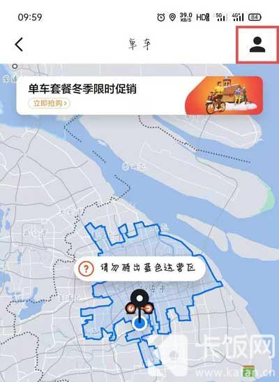 4.点击进入之后,在右上角找到【个人中心】按钮,点击进入骑车个人中心;