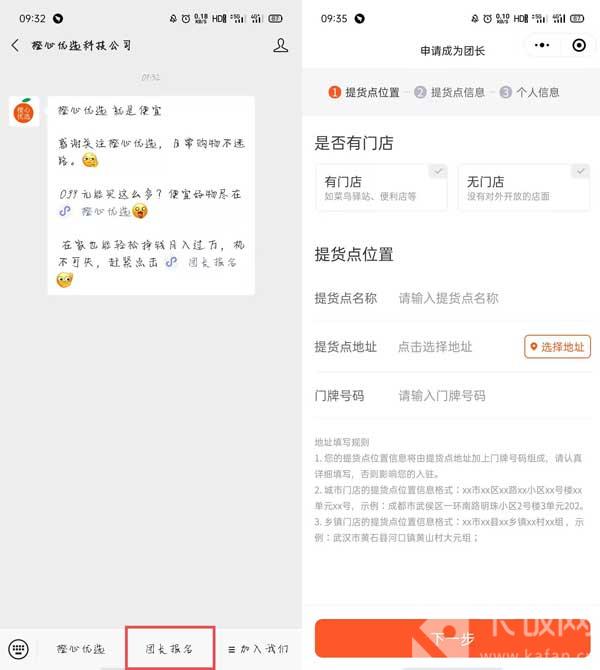 5.如果想要成为团长,可以在公众号内,点击【团长报名】,然后进入小程序内,根据申请流程填写信息;