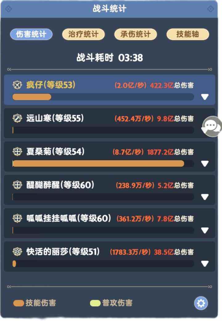 我二转53级的时候战力也就120W出头,打龙秒伤能到2e(如图),当然这点秒伤肯定不能和大佬比,但是作为普通玩家肯定不能算低了,至少在我们区(16区)龙榜上跟我名次差不多的战力都比我高。