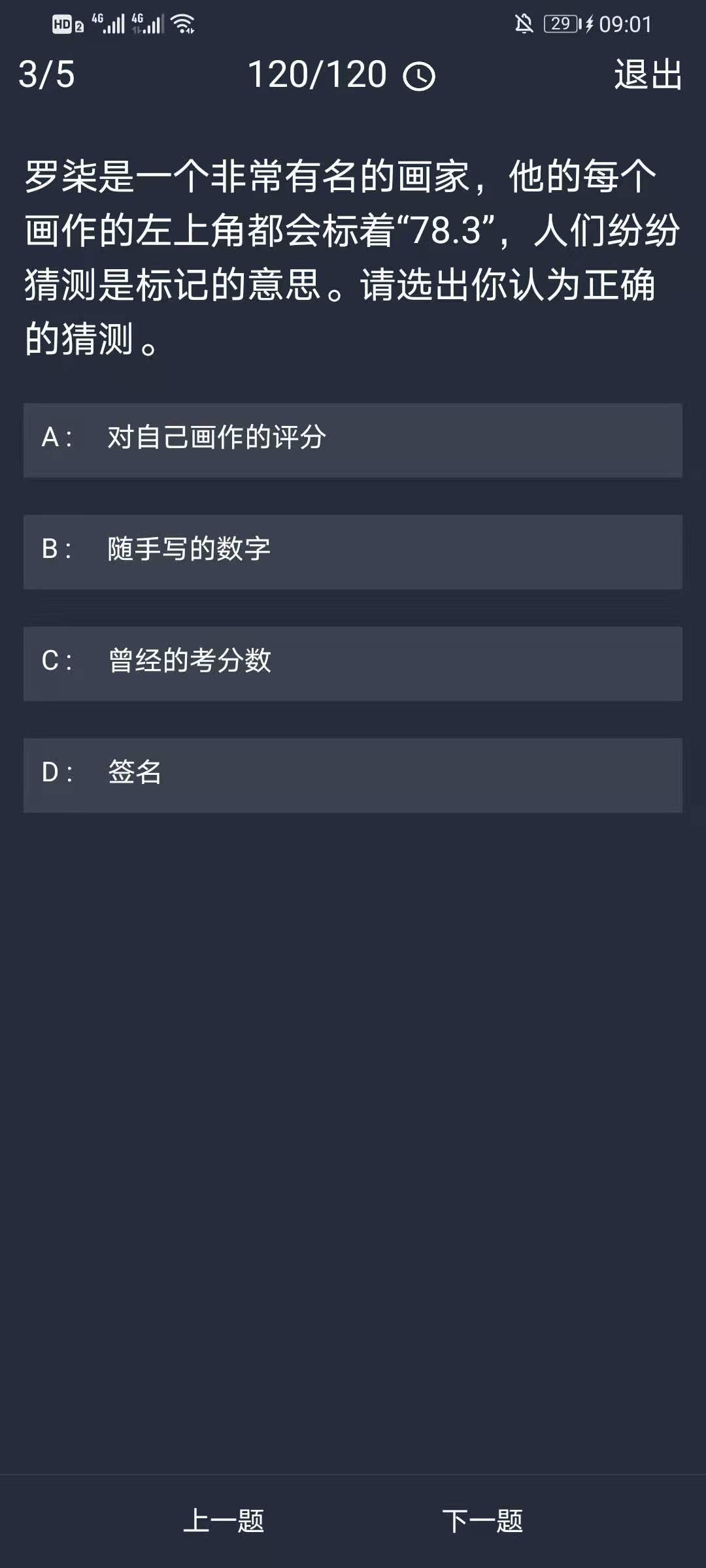 3、罗染是一个非常有名的画家,他的每个画作的左上角都会标着"78.3”,人们纷纷猜测是标记的意思。请选出你认为正确的猜测。