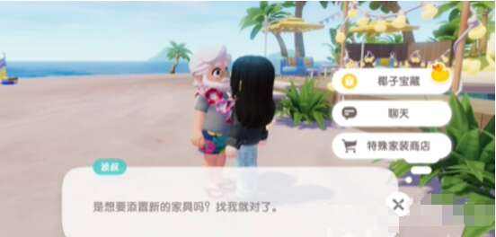 4、在对话当中选择选项“椰子宝藏”,就会自动传送至沙滩。