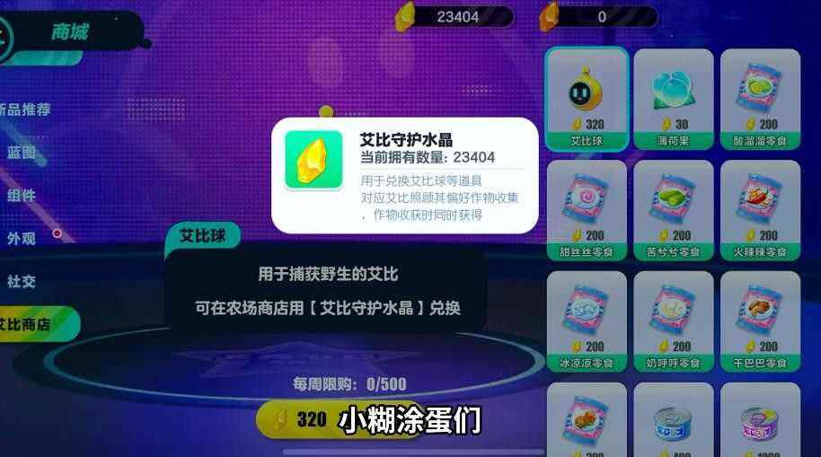 注意:如果你们想让自己的艾比变强,这三类水晶 是比较重要的资源,大家一定要记得每天把商店限购的零食买完哦!