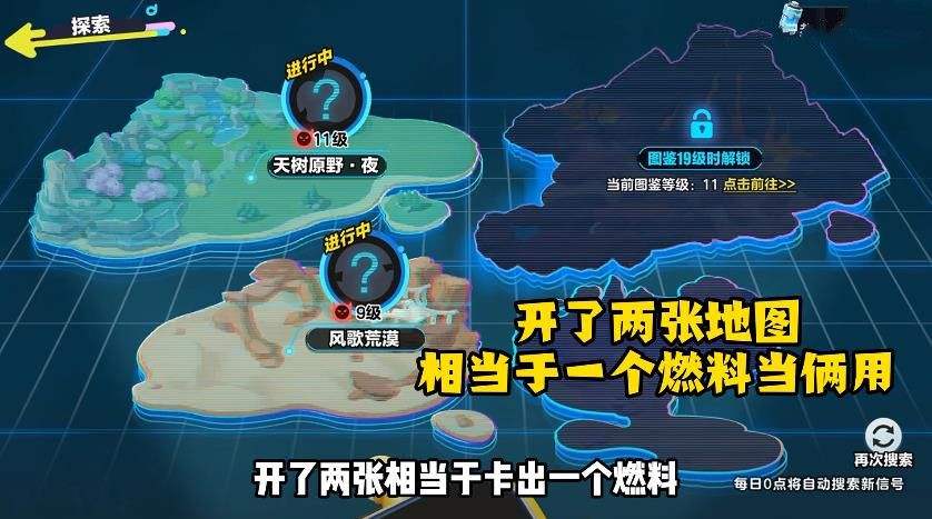 了?但是奇迹来了,此时别的处于进行中状态的地图,一样可以再次前往,并且不额外消耗燃料,也就是说我们可以用每天自动刷新的一个燃料,。