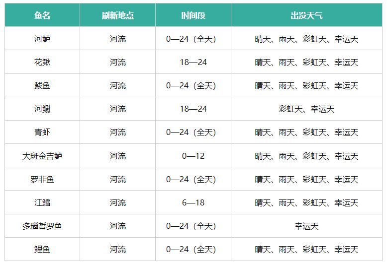 鳟鱼【*0-6,18-24点,晴天、彩虹天、幸运日出现】