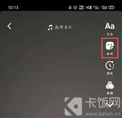 3、拍完视频之后,在视频编辑页面,点击右上角的【贴纸】选项;