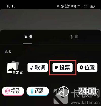 4、然后我们在贴纸中,找到【投票】功能,点击应用投票;