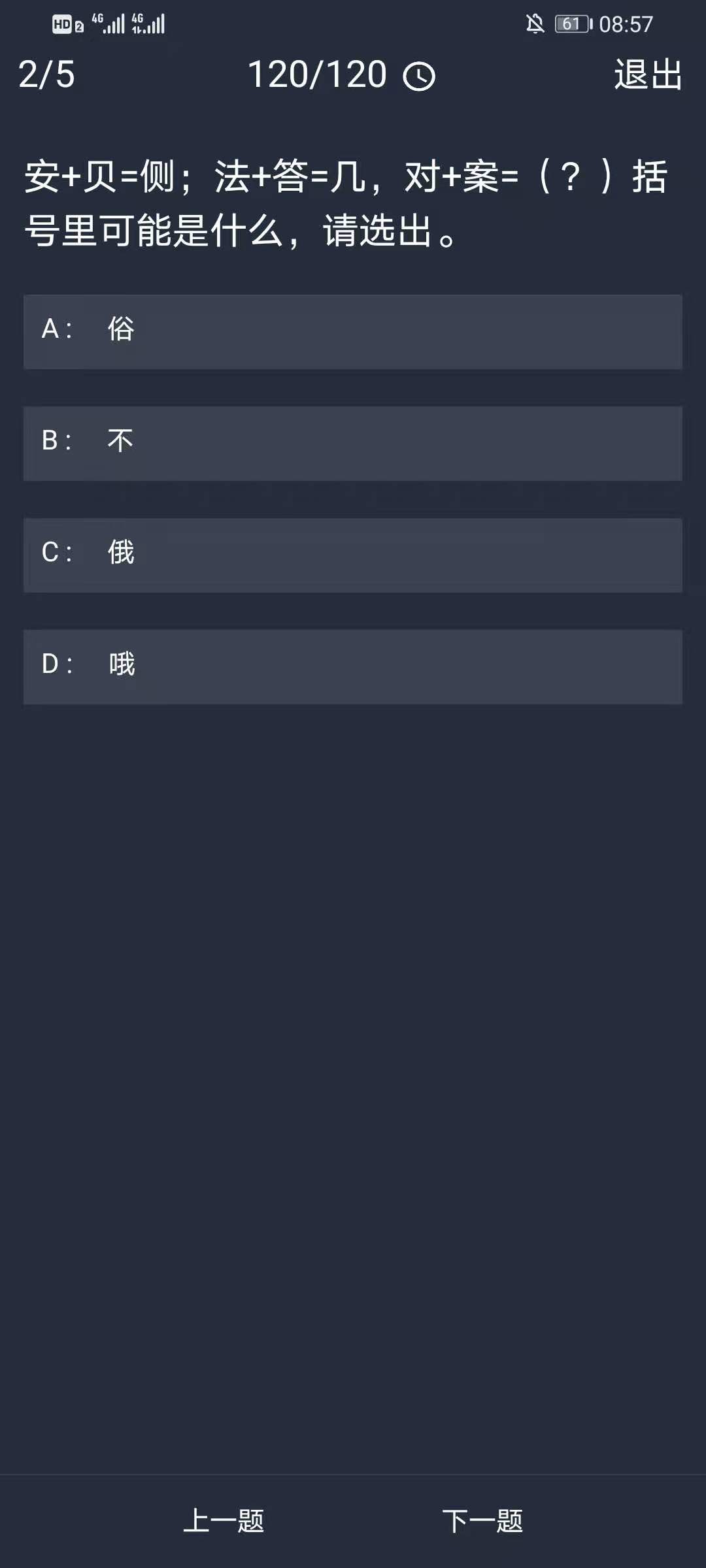 2、安 贝=侧;法 答=几,对 案=(?)括号里可能是什么,请选出。