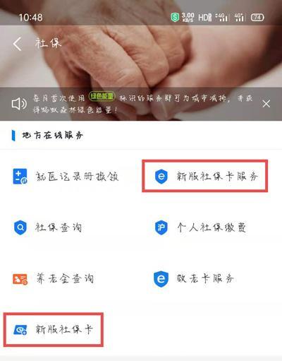 7.还可以在进入社保服务后,点击【新版社保卡】服务,选择【新版社保卡开通】一项,按照同样步骤操作即可。
