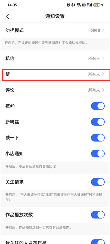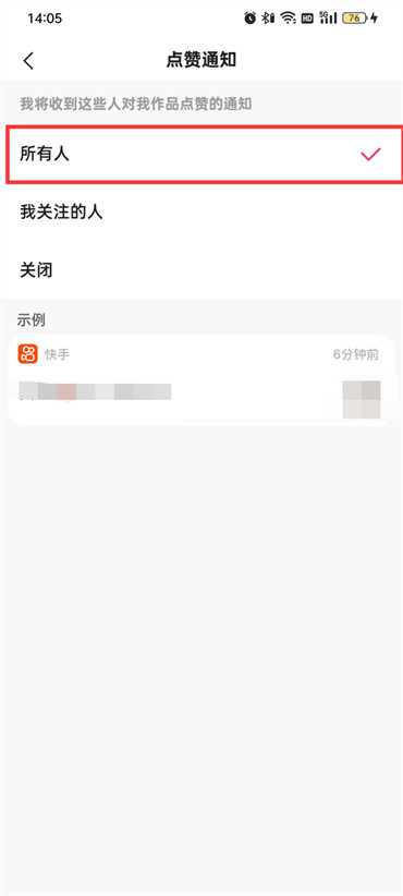 5.最后在点赞通知的页面中点击【所有人】即可设置通知;
