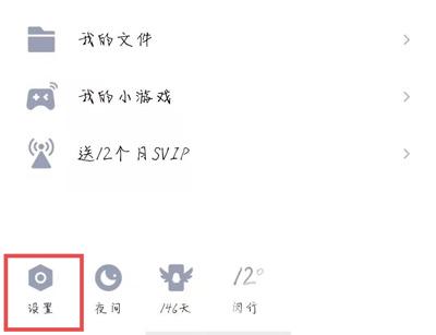 2、打开菜单栏页面之后,在左下角找到并点击【设置】一项,进入QQ设置;