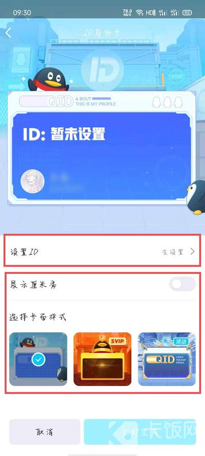 6、随后在QID设置页面,选择QID身份卡的卡面样式、开启厘米秀,点击【设置ID】;