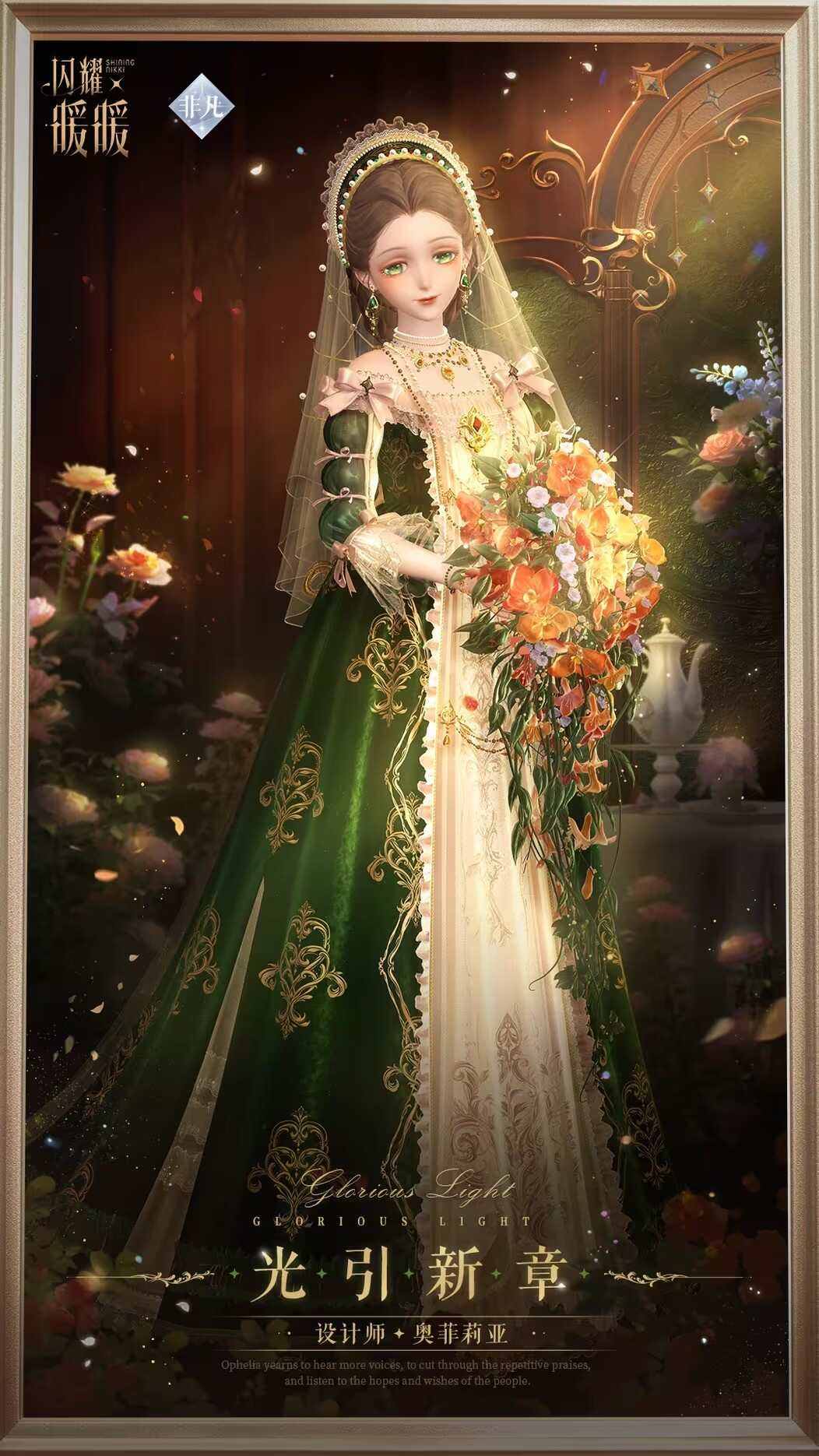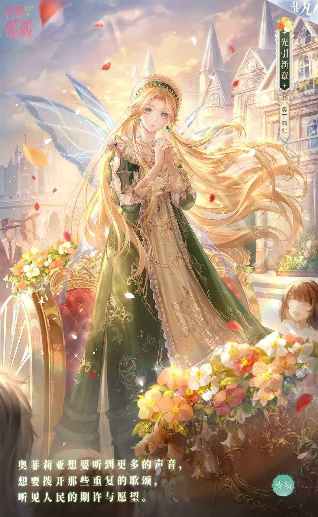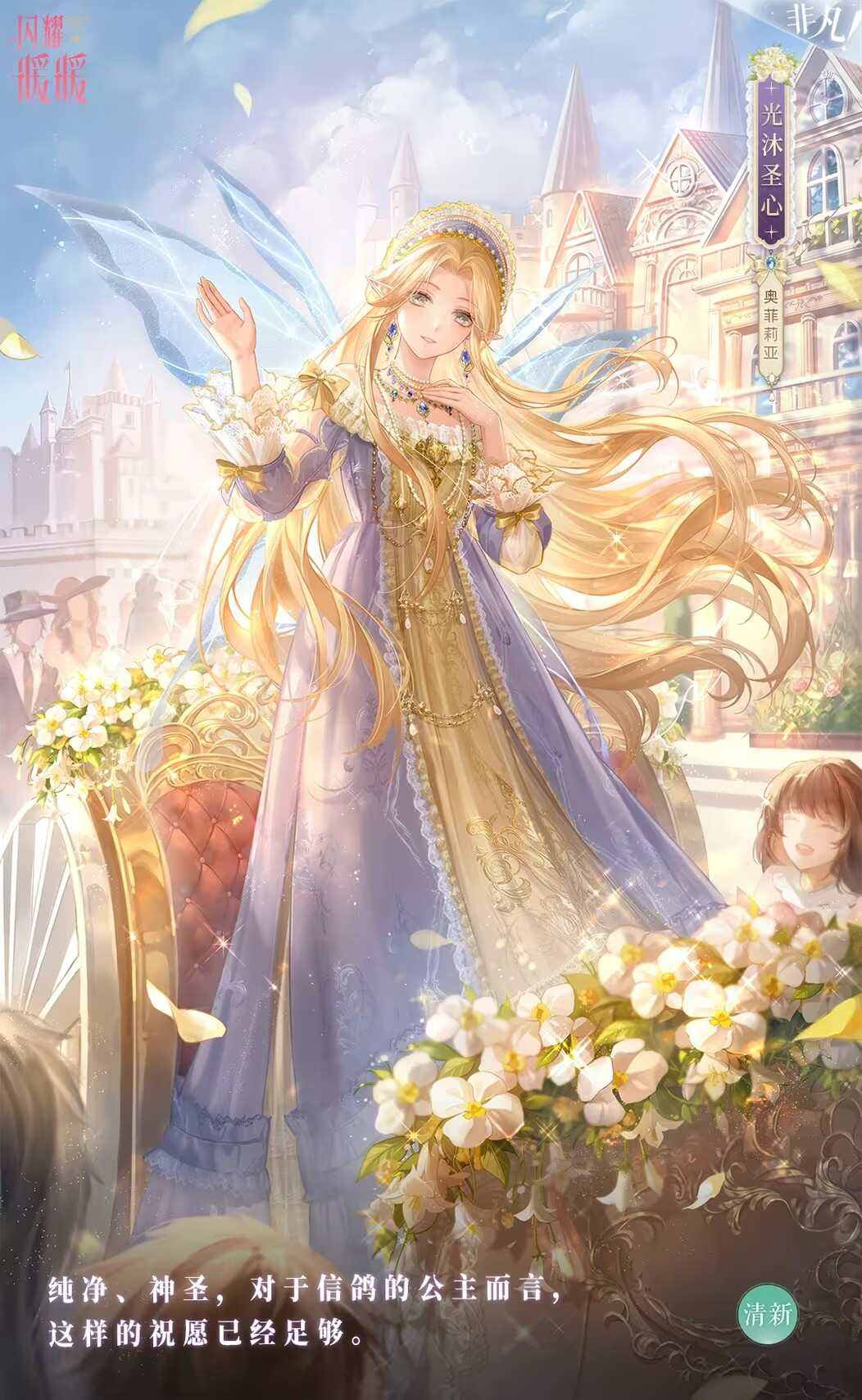 【萌趣服饰-花语祝颂】可在完成【光沐圣心】套装及设计师之影收集后通过【成就】获取。