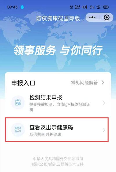 8、随后选择【查看及初始健康码】一项,进入查看国际版健康码;