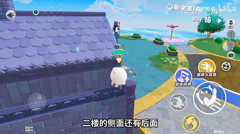 如果没有队友和你一起卡无敌点,那么也是一个与世无争很好的无敌点位。我们带上突刺来到房子后面,也是一样炸不到的。如果有人想要上房来打你,你还可以率先炸飞他,主打一个在玩生化模式完离点的感觉。