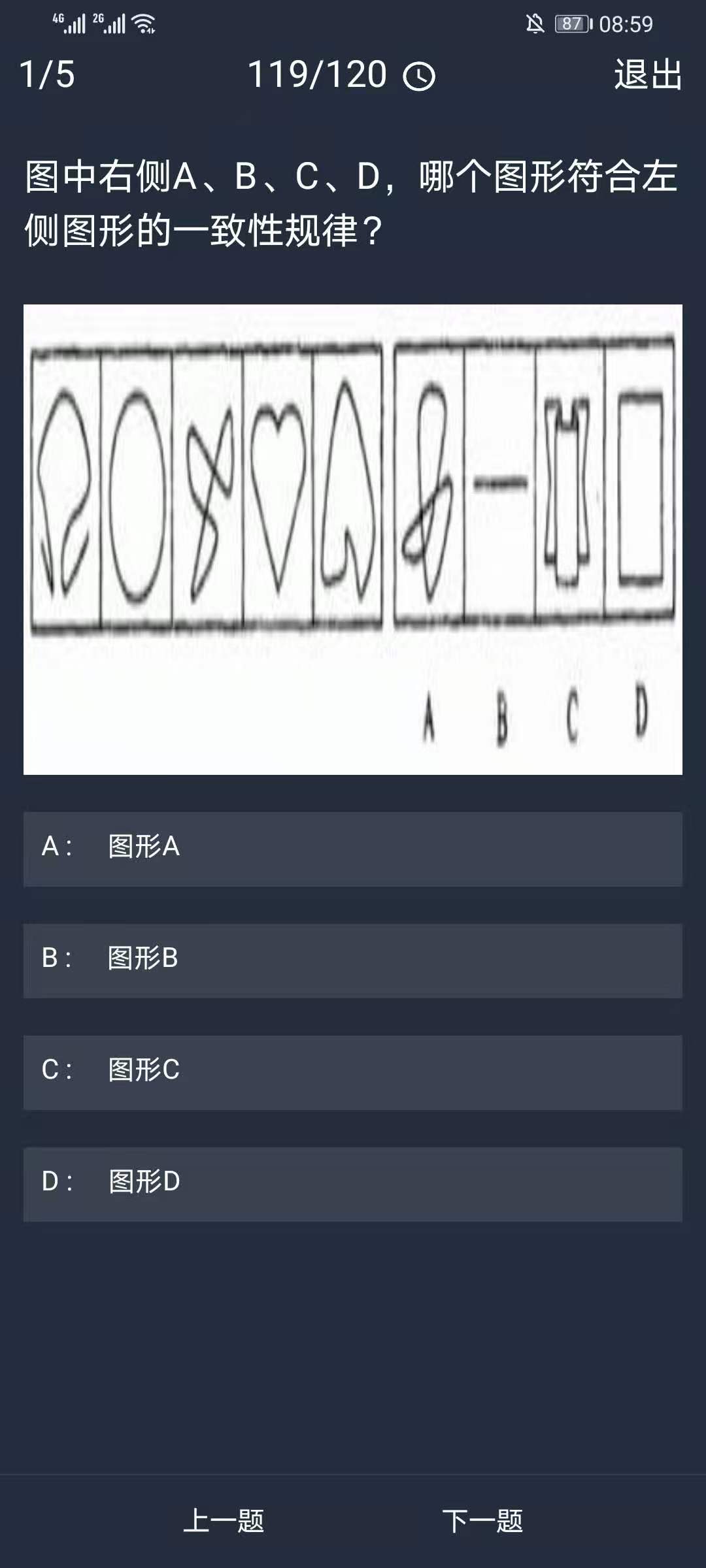 1、图中右侧A、B、C、D,哪个图形符合左侧图形的一致性规律?