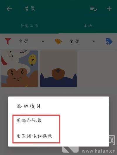 7、成功导入资源之后,在本地资源中,选择需要应用的背景;
