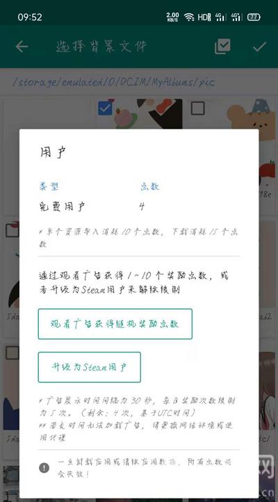 6、普通用户导入资源需要消耗一定的点数,可通过观看视频获得奖励点数,而Steam用户需要花费26元购买升级为Steam用户,可无限导入和下载资源;