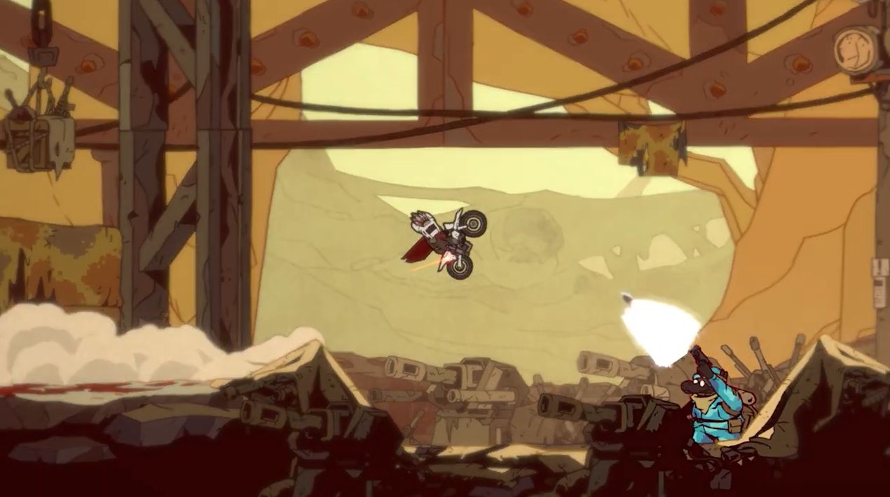 游戏中玩家将驾驶快速灵活的摩托进行战斗,穿越广袤的手绘世界,在废土飞驰,完成危险的跳跃,以子弹时间向敌人射击。使用基于技能的强化道具,不断挑战强大的头目。