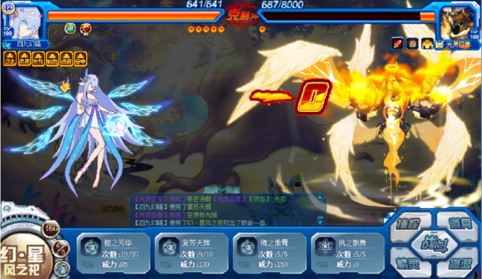 在4回合内,每回合都能恢复自身最大体力数值,让使用者保持良好的战斗状态,如果使用者的体力低于一半,还会附加等量固定伤害,增加对敌人的输出,而且,使用光灵守望后,下2回合自身所有技能先制 2,使得使用者在战斗中能够更快地发动攻击,浮虚光翼闪作为她的第五技能,它可以消除对手的回合类效果,消除成功后,自身下2回合造成的伤害会提高100%,同时会令对手失神,使敌人无法正常行动,如果未触发失神效果,则会随机吸取对手2项属性-2,并将这些属性附加给自己,即使未能击败对手,也能附加对手双防之和35%的固定伤害哦。