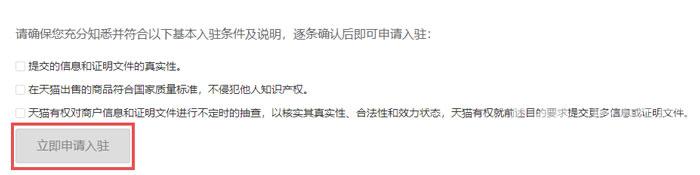 6、勾选下方的入驻条件及说明,点击【立即申请入驻】;