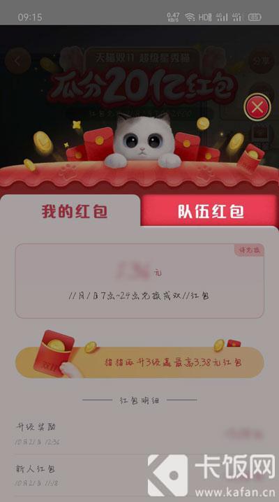3、然后切换到【队伍红包】查看当前队伍所获红包;